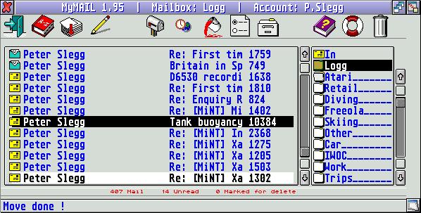 On Sun, 30 Oct 2011 22:08:43 , Peter Slegg <p.slegg@scubadivers.co.uk> wrote: > Are the new bubbles yellow or white ? > > I had a crash and then had to reboot 3-4 times dues to the S-Magic > problem. > > I then did a full power cycle and turned on Bubble again and was able to > reboot. > > CAB and Texel now show white bubbles. > > Regards, > > Peter It seems to have affected some of the colours used by MyMail to highlight the mails. The image shows the bottom one in black which it wasn't before. Regards, Peter