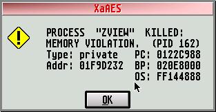 On Sun, 02 Oct 2011 19:17:37 , Jo Even Skarstein <joska@online.no> wrote: > > On Sun, 2011-10-02 at 16:53 +0000, Peter Slegg wrote: > > > It lasted until I started Texel. See the screenshot. > > This is not a Thing-problem. It's Texel. It (or rather it's author!) > doesn't care about proper implementation of the AV-protocol and > allocates the AV-buffer in private memory. Set the mem-flags to > "Readable" and your problem should be fixed. > > Jo Even What flags settings are people using for zView ? bash-2.05a# flags -Pv /d/images/zview/zview.app Current flags: 0x00000016. Altload flag is set (load into alternate RAM). Altalloc flag is set (allocate memory from alternate RAM). Program's memory is not protected at all (globally accessible). I gather Global is the most relaxed but it still causes a memory violation. Regards, Peter
